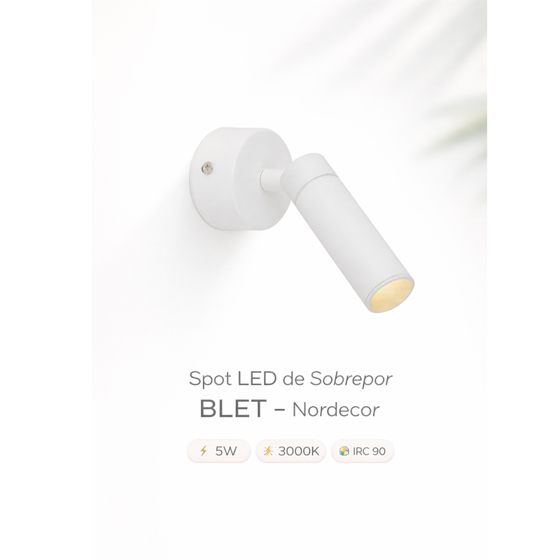 O Spot LED de Sobrepor BLET da Nordecor é uma solução compacta e elegante para projetos de iluminação que buscam precisão e conforto visual. Com 5W de potência e temperatura de cor de 3000K, ele proporciona uma luz quente e aconchegante, ideal para criar ambientes agradáveis e sofisticados.