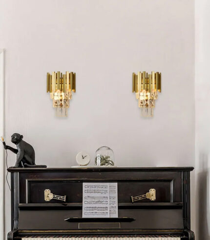 Arandela Redonda Dourada e Cristal 20X30CM Sindora