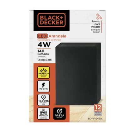 Arandela Led Wall Plus Preta 1 Facho Aberto Stella